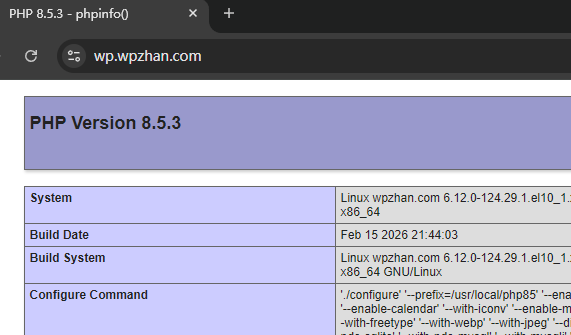 [root@wpzhan.com:~/php/php-8.5.3]$ netstat -lnpt | grep 9085